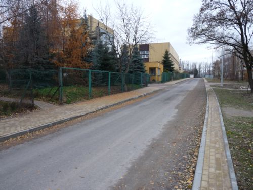 Wykonana została nawierzchnia ciągu pieszo jezdnego, odwodnienie, kanalizacja sanitarna i oświetlenie.