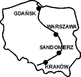 u styku z Kotliną Sandomierską, na południe od 51 równoleżnika i na wschód od 21 południka.