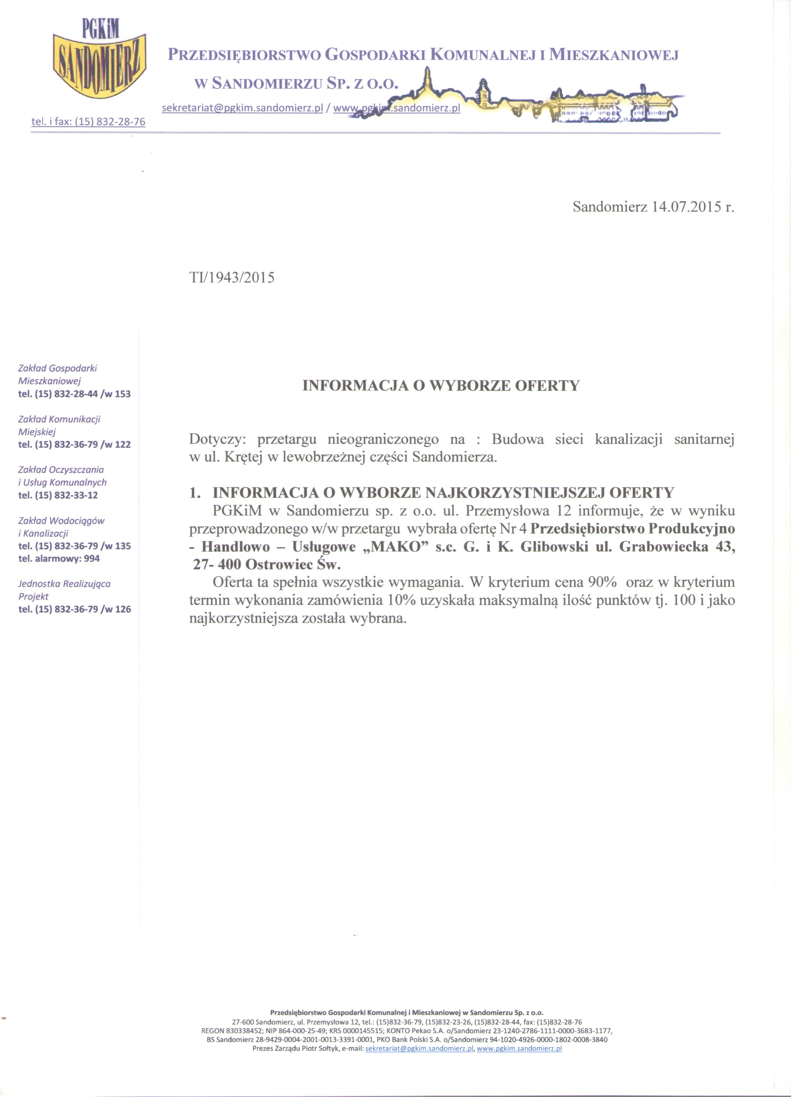 Informacja zatwierdzona przez WP dnia 15.07.2015